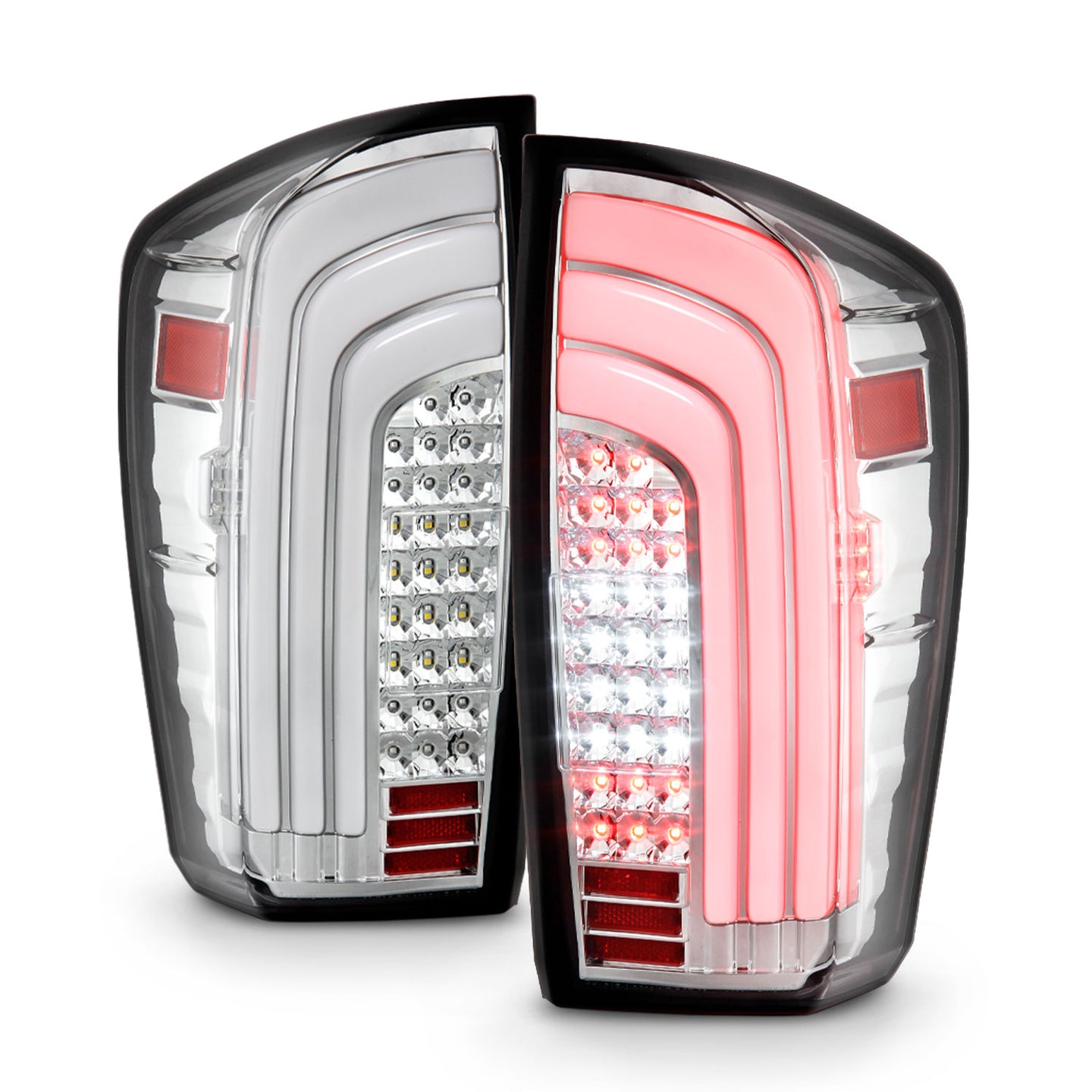 AKKON - Fits 2016-2022 Toyota Tacoma Crew / Extended Full LED Reverse Chrome Tail Lights Brake Lamp Sequential Tube Signal Pair