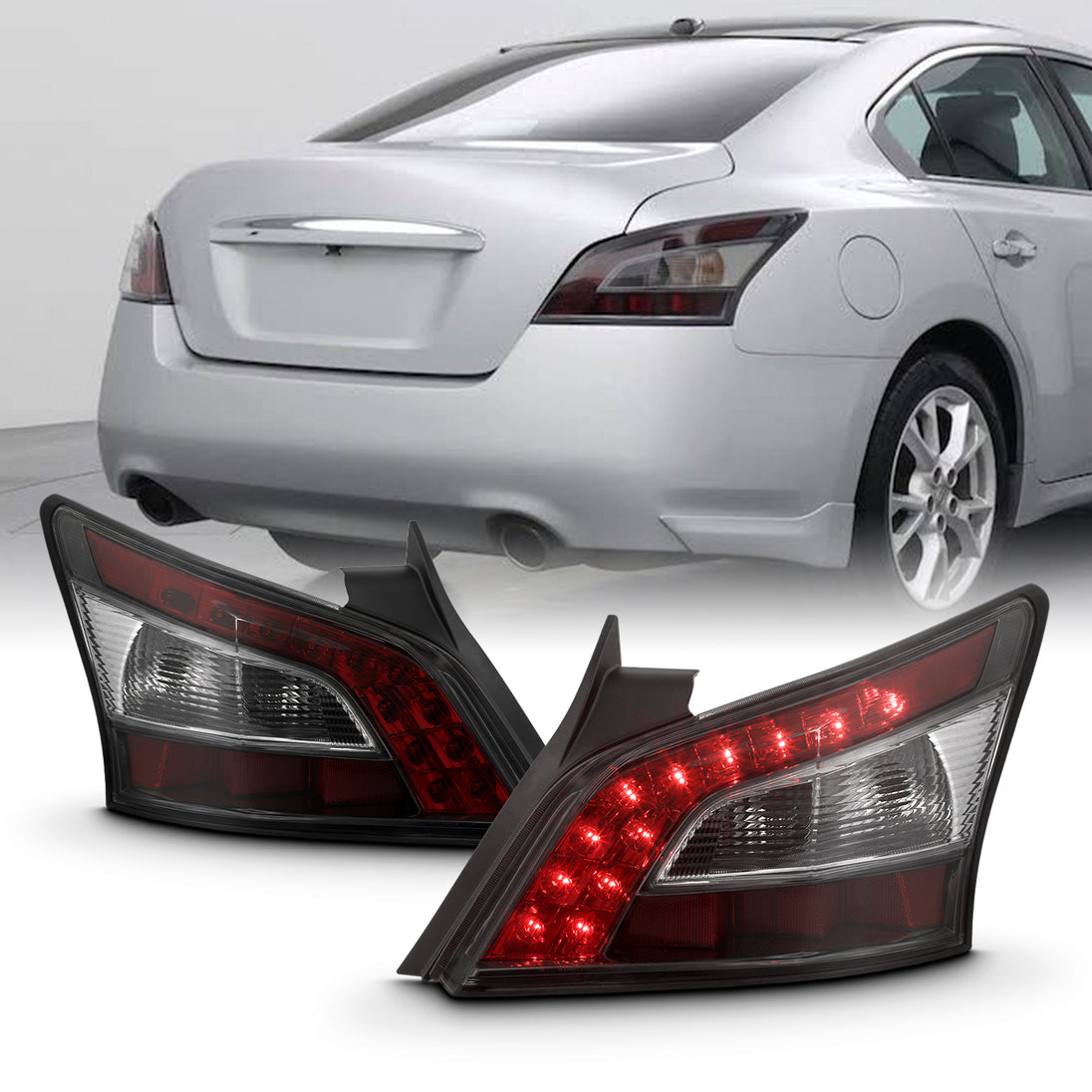 AKKON - Fits 2012-2014 Nissan Maxima Chrome Smoked Tail Lights Pair Driver+Passenger w/LED DRL Running Lamp Replacement