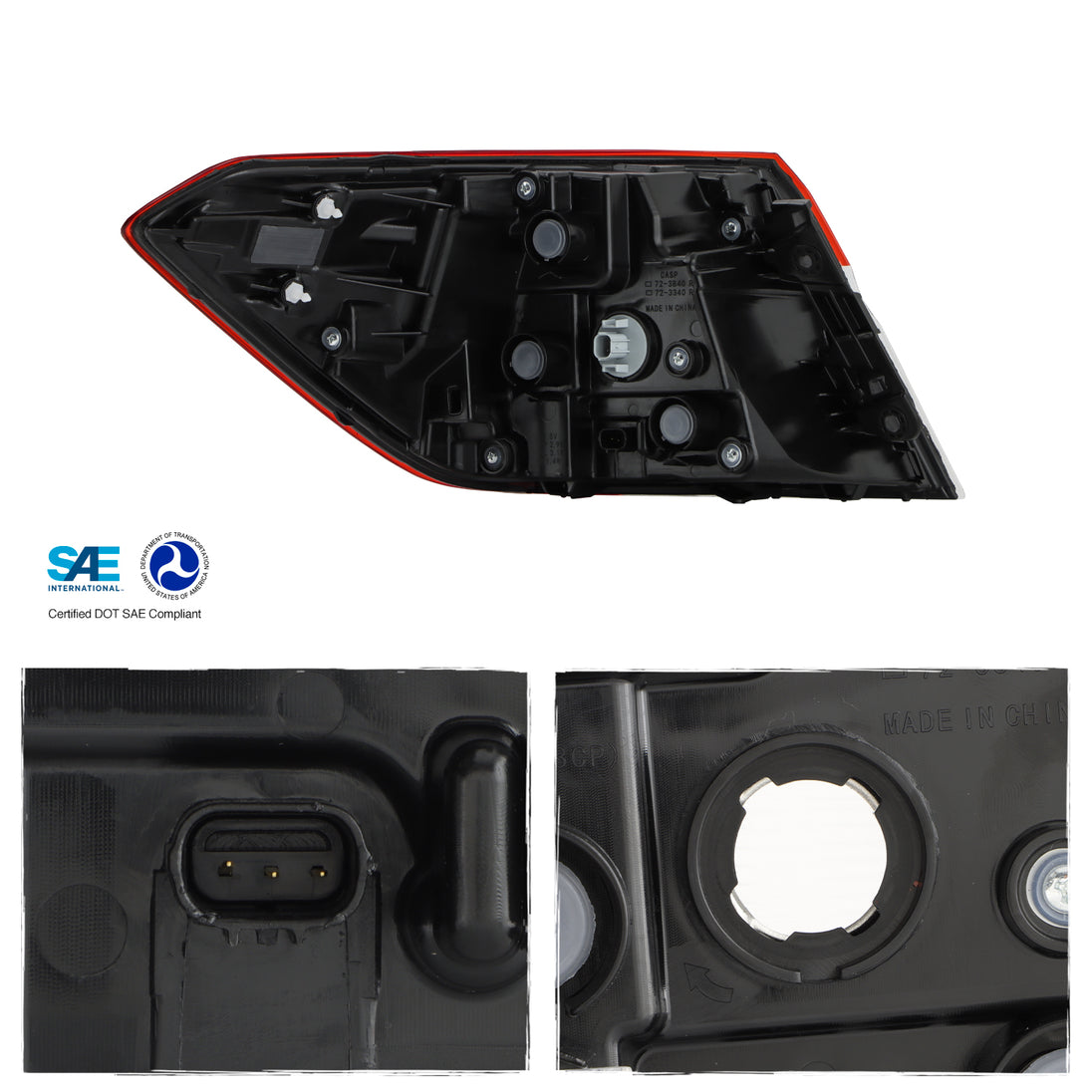 AKKON - Fits 2022-2025 Honda Civic Sedan LED Running Brake Red Clear Tail Light Outer Passenger Right Side Replacement