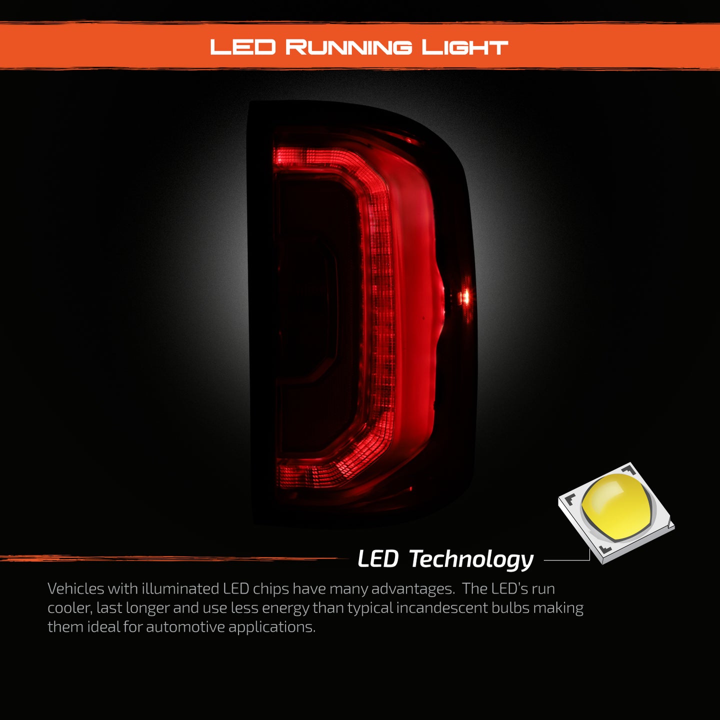 AKKON - Fits 20016-2018 GMC Sierra 1500 LED Running Turn Signal Chrome Tail Lights Pair Driver+Passenger w/Reverse Bulb