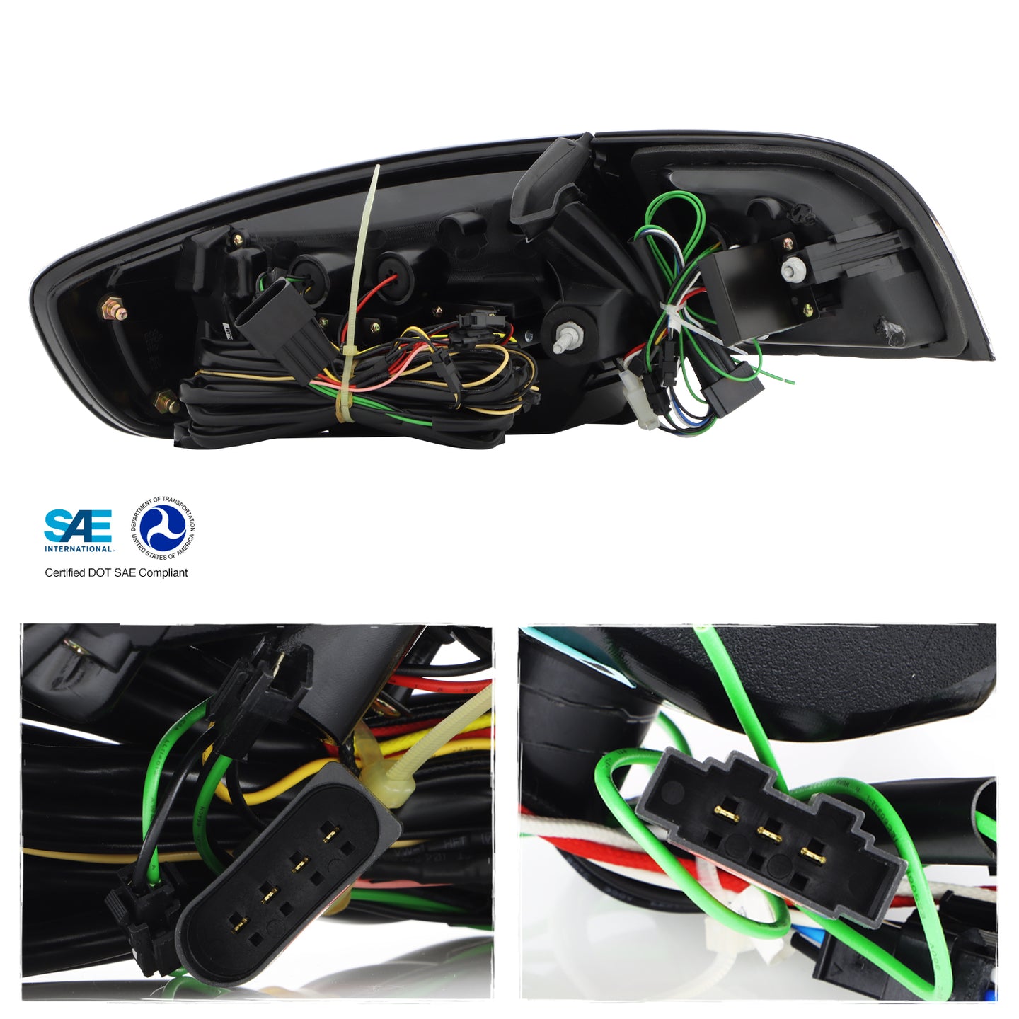 AKKON - Fits 2003-2008 Audi A3 w/ Full LED Brake Parking Turn Signal Black Tail Lights Pair Driver Left+Passenger Right