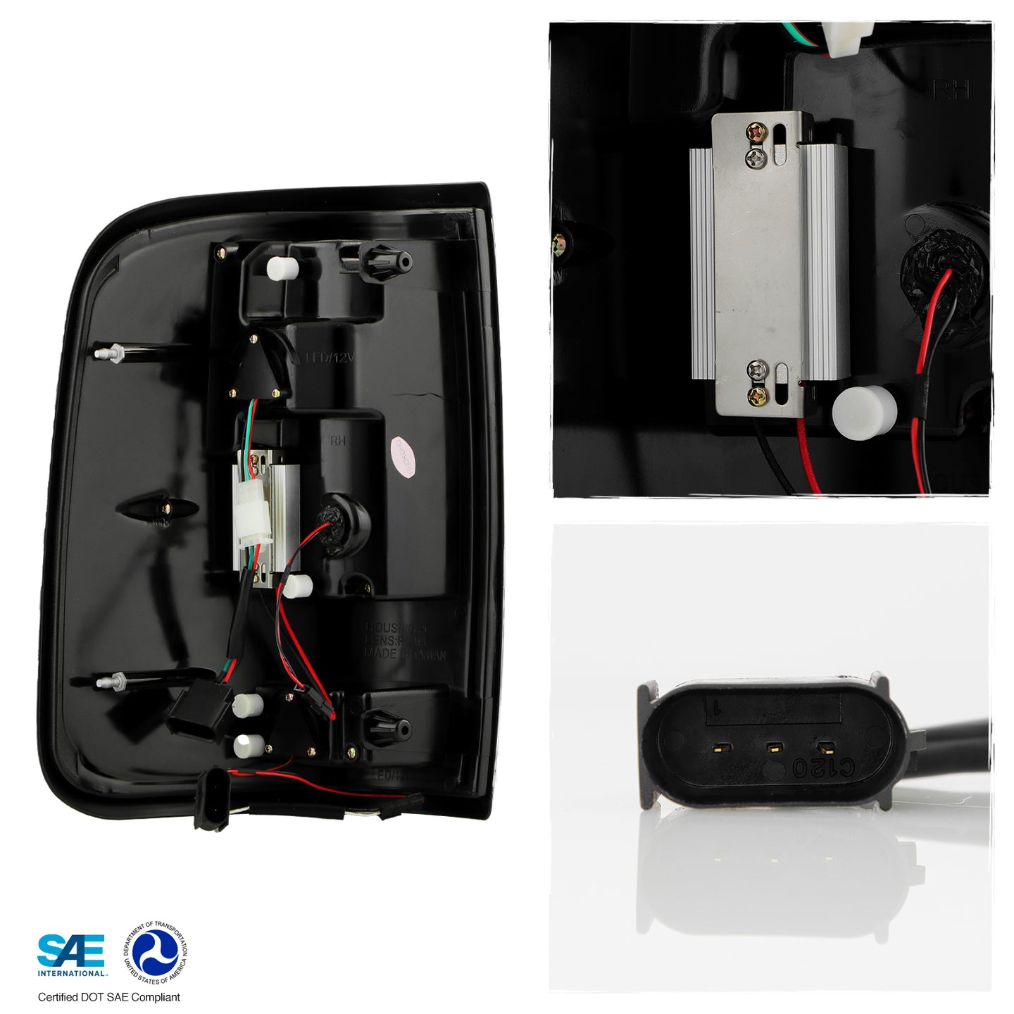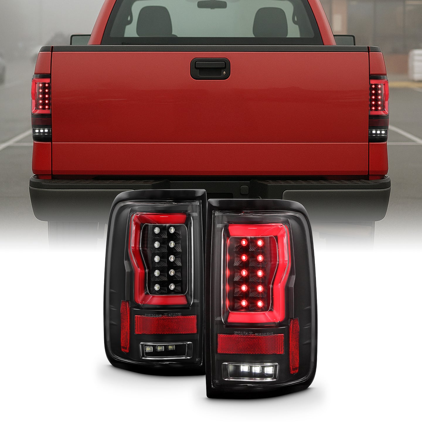 AKKON - Fits 2004-2008 Ford F150 Black Tail Lights Pair Driver+Passenger w/ LED Brake Running Reverse +Red Parking Bar