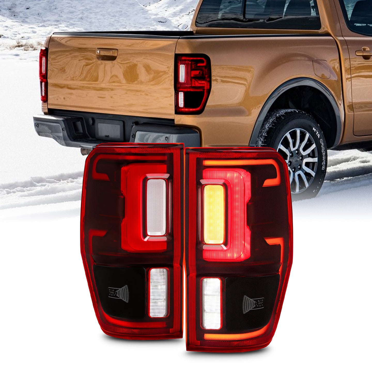 AKKON - Fits 2019-2023 Ford Ranger W/O Blind Spot [Incandescent Upgrade] Red Smoked Tail Lights Pair + LED Running Brake Signal