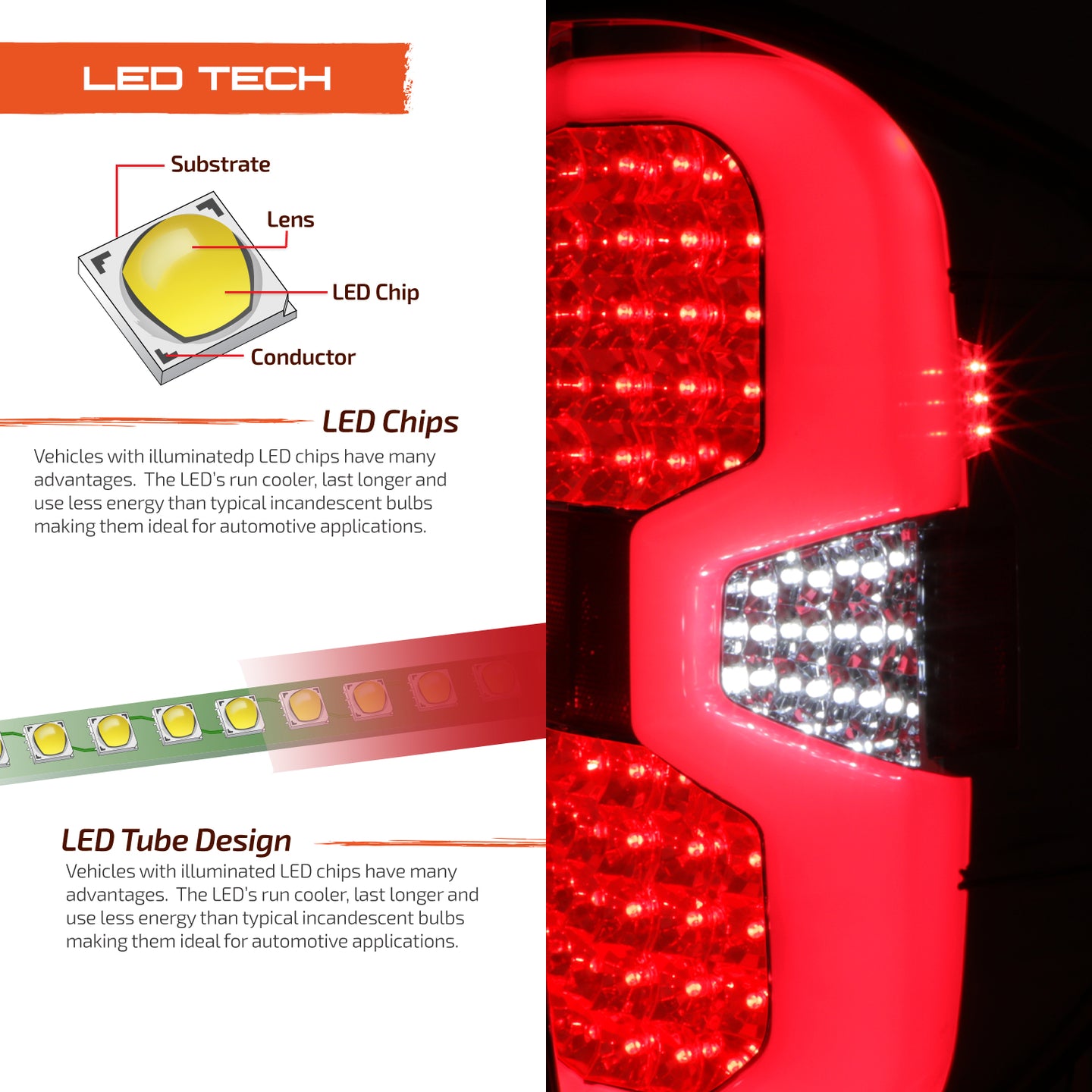 AKKON - Fits 2014-2021 Toyota Tundra Pickup Truck Full LED [Tube-Bar] Chrome Tail Lights Brake Lamp Pair Replacement Left+Right