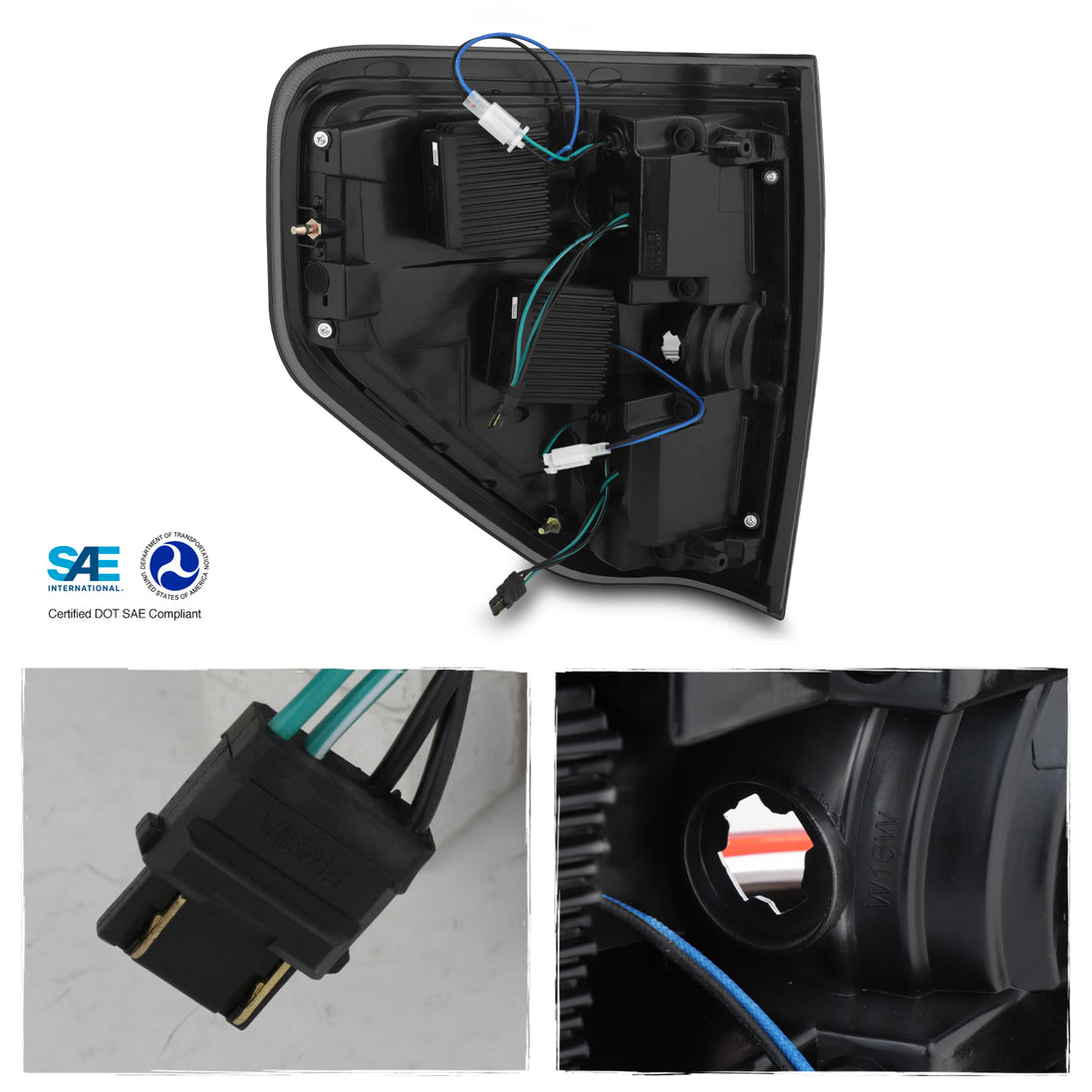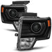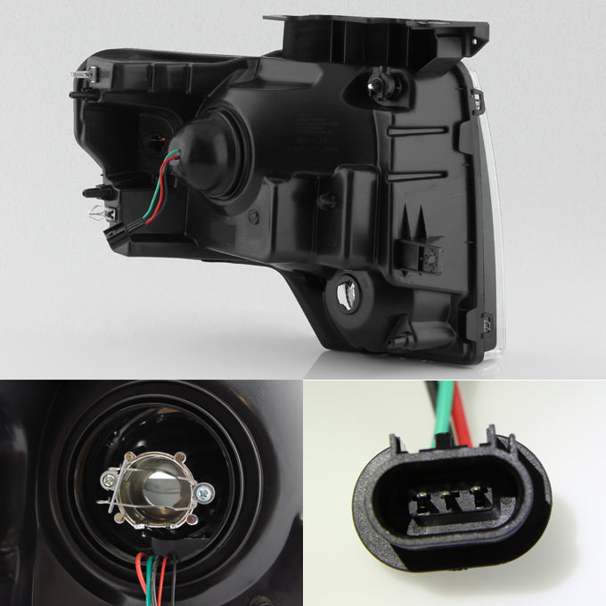 AKKON - Fits 2009-2014 Ford F-150 F150 Projector Black Headlights + [C-Tube Bar] LED Black Tail Brake Lamp 4Pcs Combo