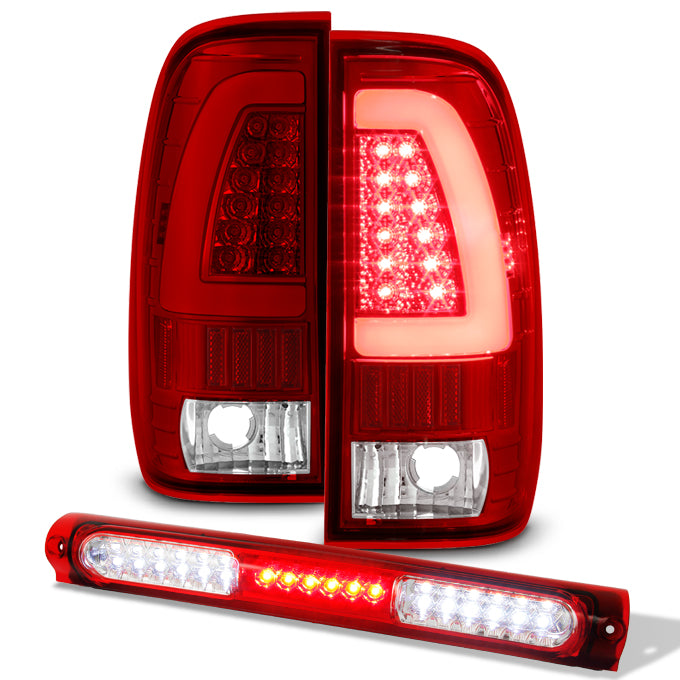 AKKON - For [LED Set] 97-03 Ford F150 F-Series Red Lens LED Tube Tail Light + 3rd Brake Cargo Lamp Combo