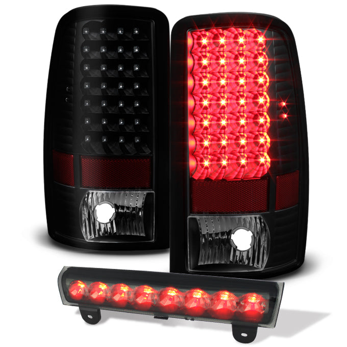 AKKON - For [Full LED] 2003-2006 Chevy Silverado | 2004-2006 GMC Sierra Black Taillights + Smoke 3rd Brake Light