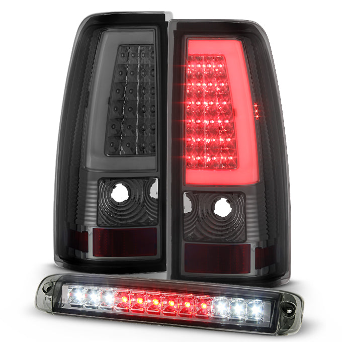 AKKON - For [Full LED] 2003-2006 Chevy Silverado | 2004-2006 GMC Sierra Black Taillights + Smoke 3rd Brake Light