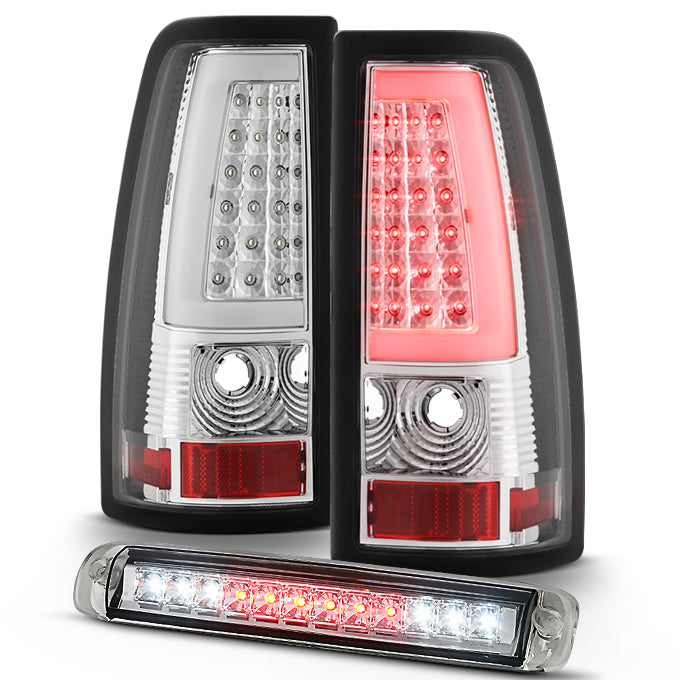 AKKON - For [LED Set] 1999-2002 Chevy Silverado 1999-2006 GMC Sierra LED Tube Chrome Tail Lights + 3rd Brake Lamp