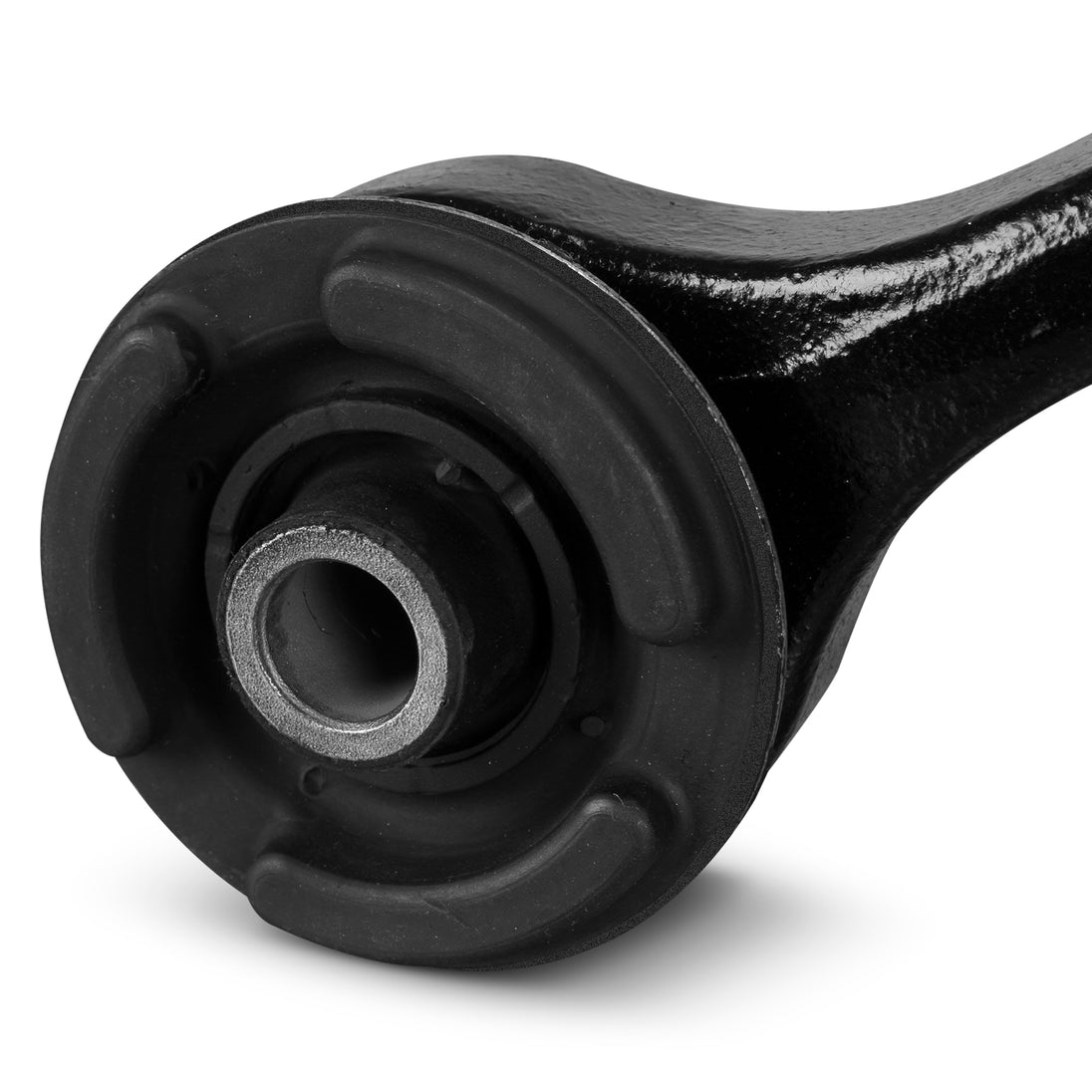 The inboard (chassis) end of a control arm is attached by a single pivot, usually a rubber bushing. It can thus control the position of the outboard end in only a single degree of freedom, maintaining the radial distance from the inboard mount. Although not deliberately free to move, the single bushing does not control the arm from moving back and forth; this motion is constrained by a separate link or radius rod.