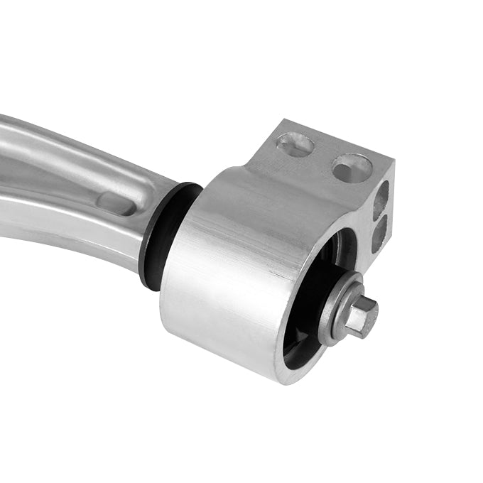 The inboard (chassis) end of a control arm is attached by a single pivot, usually a rubber bushing. It can thus control the position of the outboard end in only a single degree of freedom, maintaining the radial distance from the inboard mount. Although not deliberately free to move, the single bushing does not control the arm from moving back and forth; this motion is constrained by a separate link or radius rod.