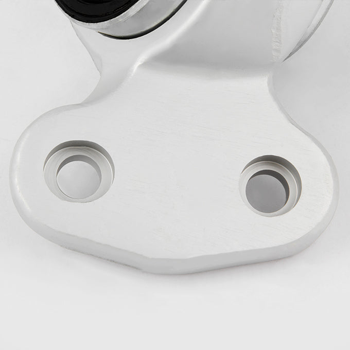 The inboard (chassis) end of a control arm is attached by a single pivot, usually a rubber bushing. It can thus control the position of the outboard end in only a single degree of freedom, maintaining the radial distance from the inboard mount. Although not deliberately free to move, the single bushing does not control the arm from moving back and forth; this motion is constrained by a separate link or radius rod.