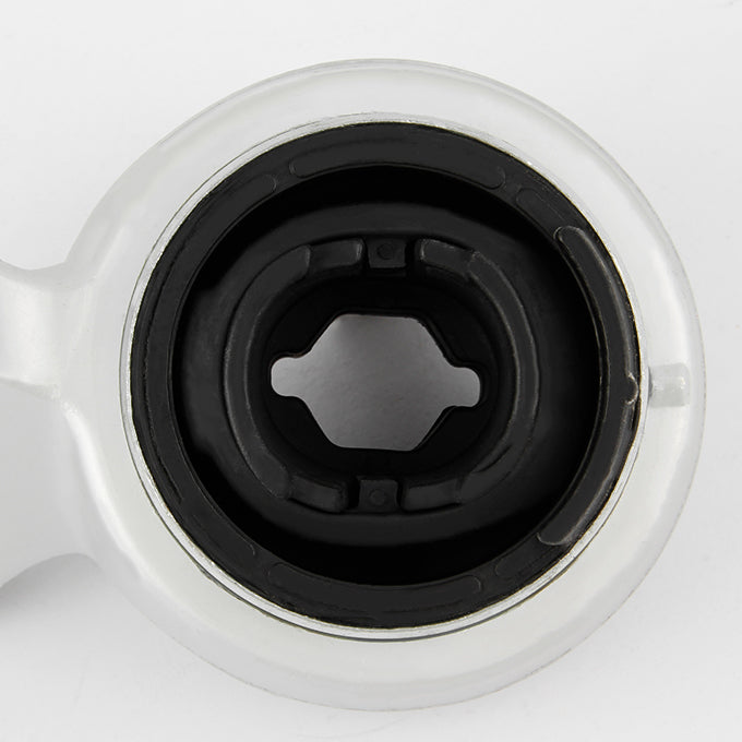 The inboard (chassis) end of a control arm is attached by a single pivot, usually a rubber bushing. It can thus control the position of the outboard end in only a single degree of freedom, maintaining the radial distance from the inboard mount. Although not deliberately free to move, the single bushing does not control the arm from moving back and forth; this motion is constrained by a separate link or radius rod.