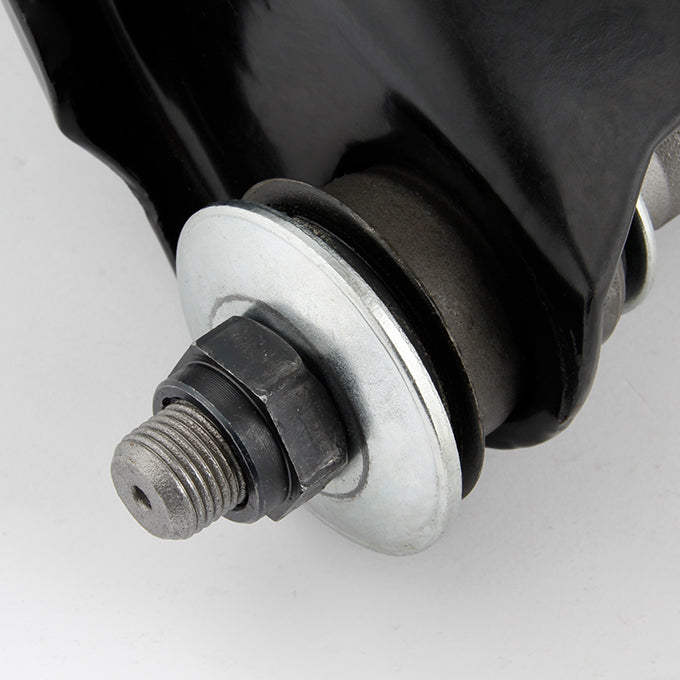 The inboard (chassis) end of a control arm is attached by a single pivot, usually a rubber bushing. It can thus control the position of the outboard end in only a single degree of freedom, maintaining the radial distance from the inboard mount. Although not deliberately free to move, the single bushing does not control the arm from moving back and forth; this motion is constrained by a separate link or radius rod.